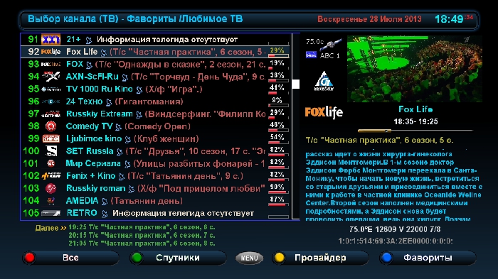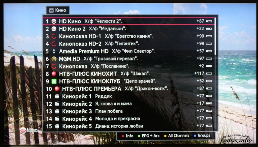 Приклад меню зі списком каналів з піконами на супутниковому ресивері з програмою Enigma2: